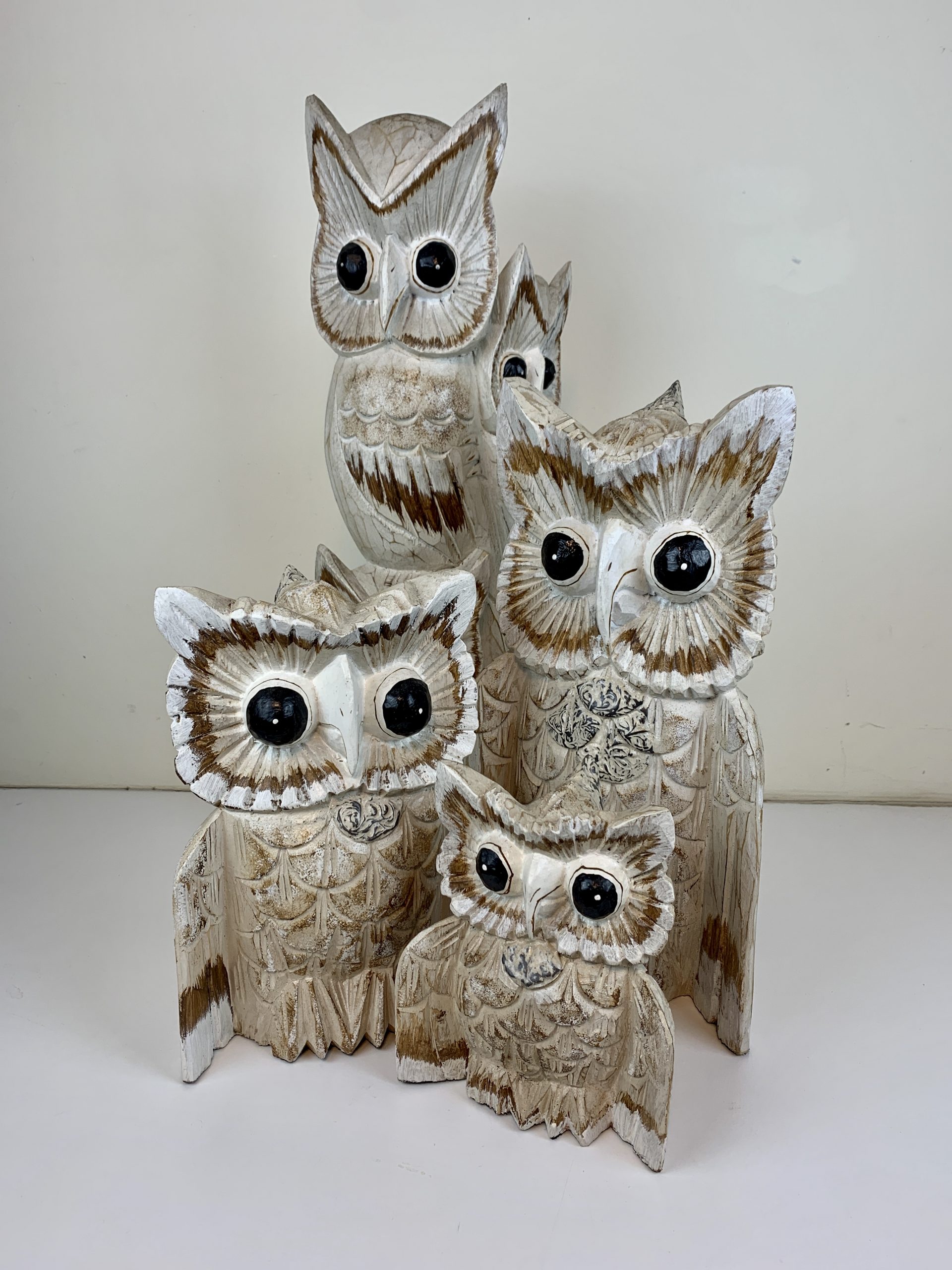 Carved Wooden Owls – White Wash TALL TOTEM OUT OF STOCK, Medium out of stock